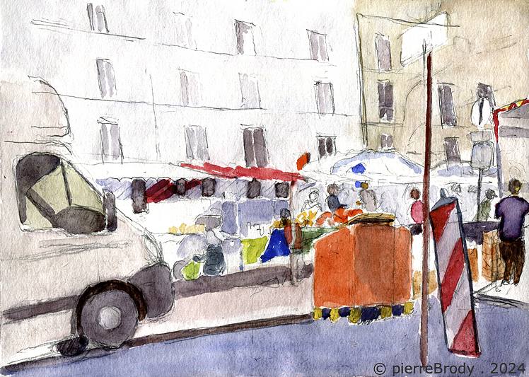 Dessins présentés à mon exposition. Le premier du marché de Belleville. Les autres du Café Pierre, près de la République.