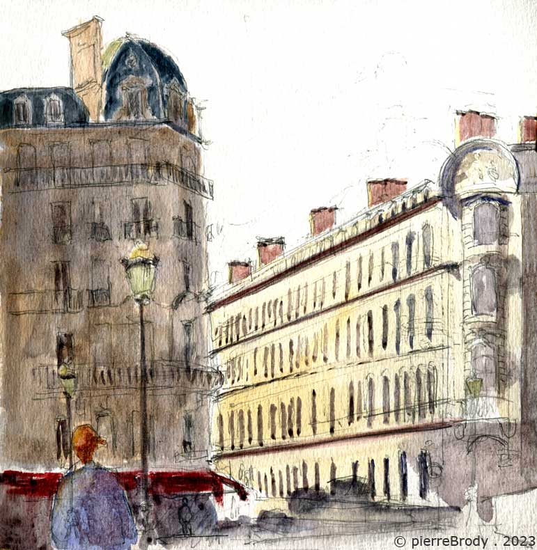 Rue du BacPar pierre Brody / 25 juillet 2023 24 juillet 2023 Depuis le Pont Royal. Avec les Urbansketchers de Paris.